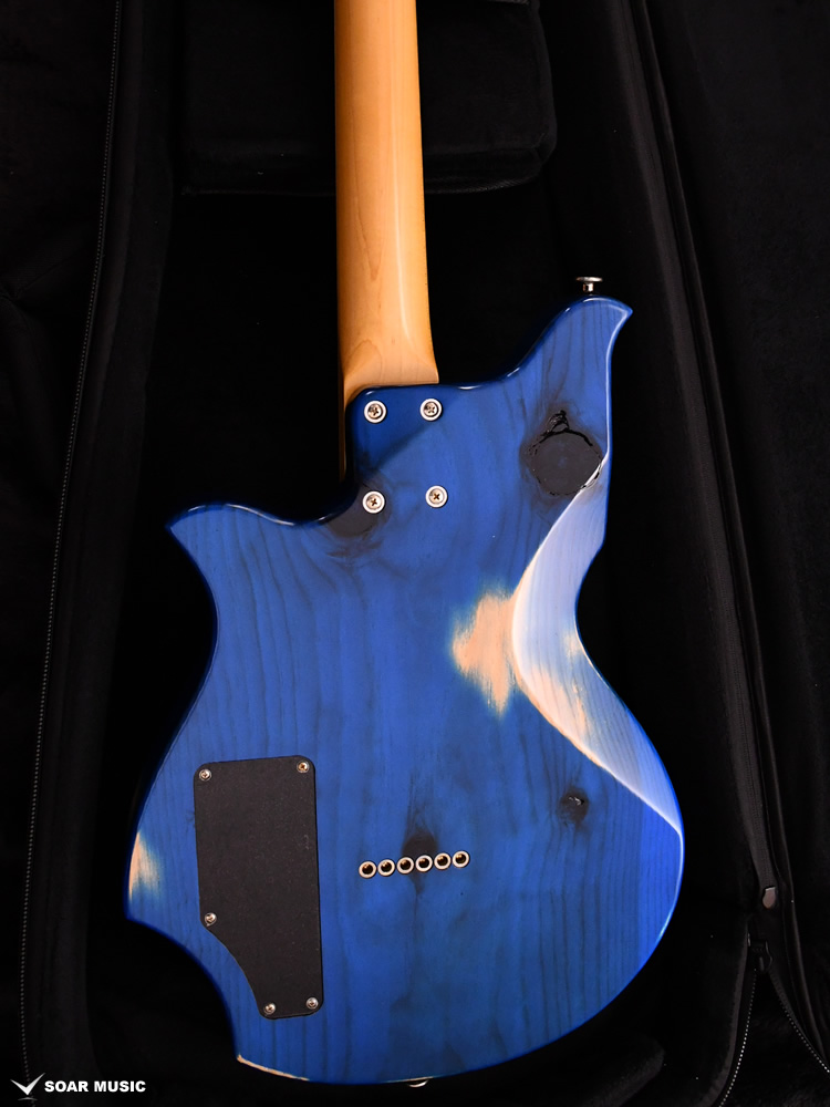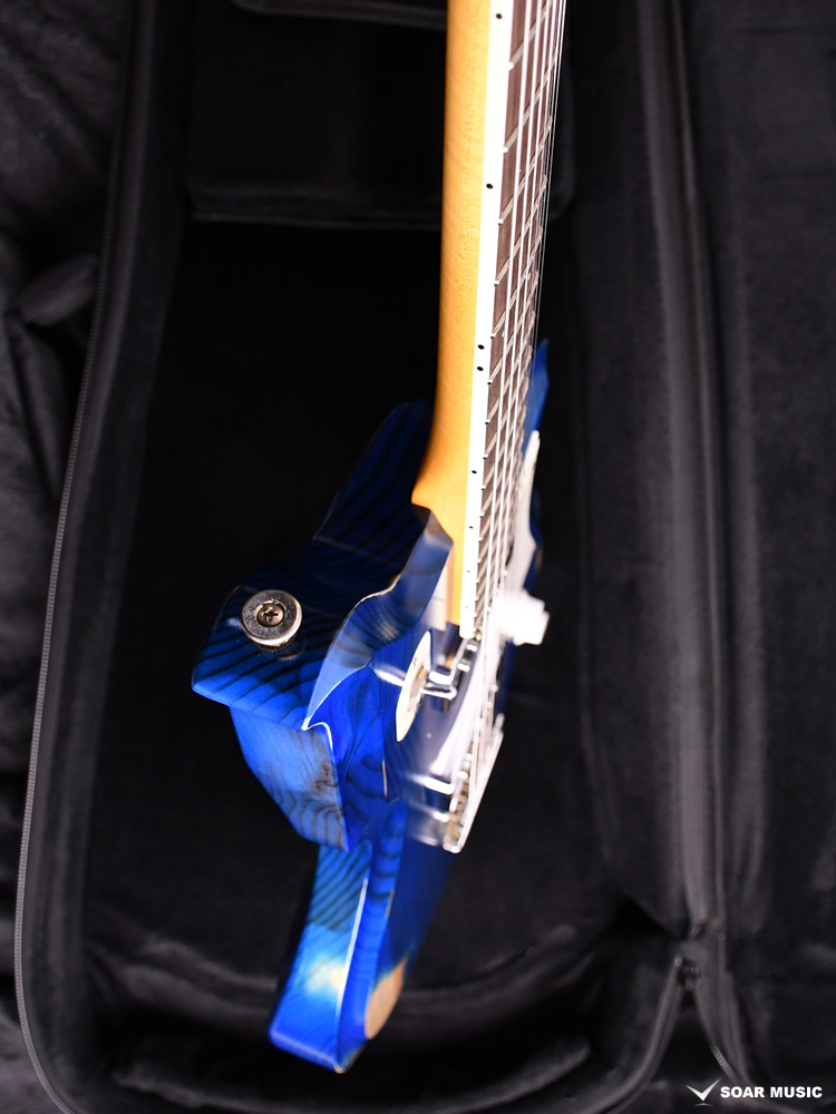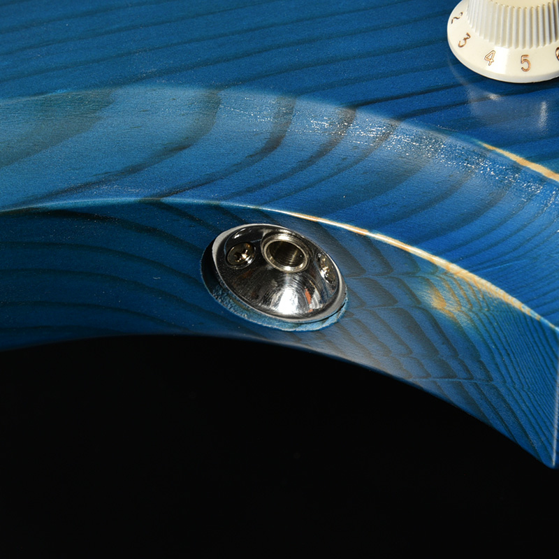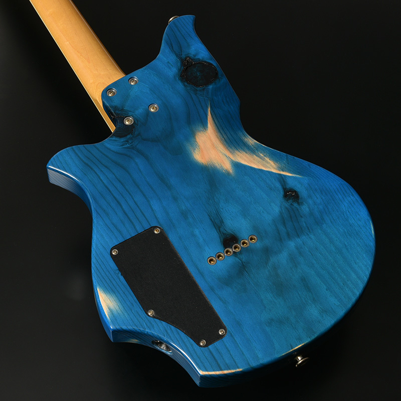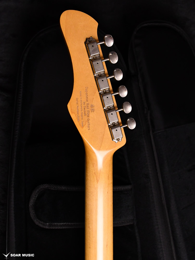 赤松の持つ節やシミを個性として捉え、全体的なデザインに馴染むようボディとヘッドストック、そして金属パーツにエイジド加工を施しています。