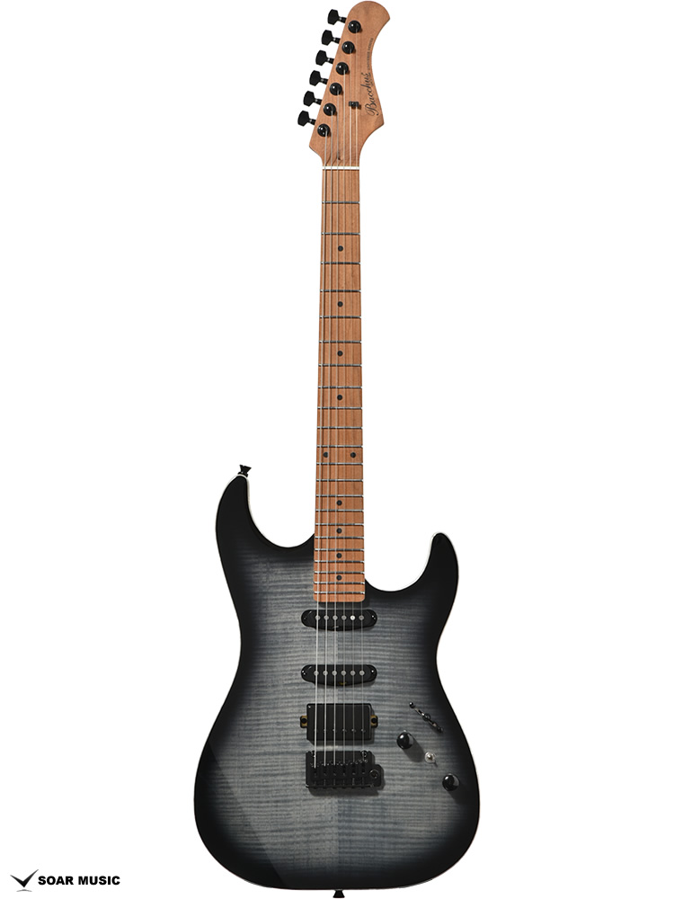 Bacchusブランドの最上位機種にあたる「G-STUDIO」を継承した抱えやすくスリムなボディシェイプを採用。 バランスの良いサウンドを持つオクメ材のボディのトップに、虎杢の美しいフレイムメイプルを合わせました。