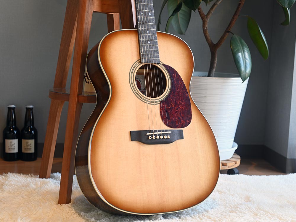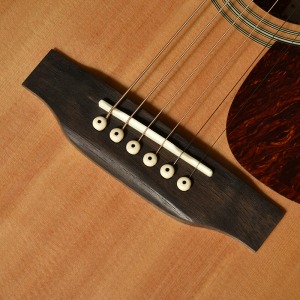 アコースティックギターにおいて弦を支える重要なパーツである「ナット」と「サドル」には、高級ギターにも用いられる“牛骨”を採用しました。安価なギターで多く使われる樹脂製と比べ、牛骨は芯のある、まとまったサウンドを実現します。さらに、自然素材ならではの温かみを感じさせる外観や手触りも、所有する喜びを高めてくれる大きな魅力です。
