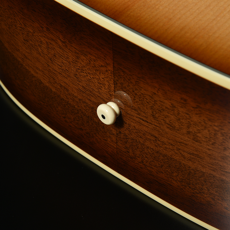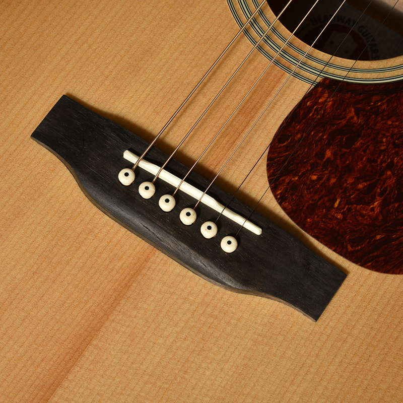 アコースティックギターにおいて弦を支える重要なパーツである「ナット」と「サドル」には、高級ギターにも用いられる“牛骨”を採用しました。安価なギターで多く使われる樹脂製と比べ、牛骨は芯のある、まとまったサウンドを実現します。さらに、自然素材ならではの温かみを感じさせる外観や手触りも、所有する喜びを高めてくれる大きな魅力です。