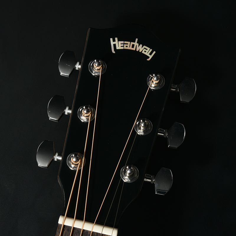 ネックには、さらさらとした手触りが心地よいサテン仕上げを採用しました。これにより左手の滑りが良くなり、スムーズなコードチェンジや運指をサポートします。 一方、ボディは高級感あふれるグロス仕上げを施し、Headway伝統の「後仕込み製法」によって、異なる仕上げのボディとネックをスムーズに接合させています。