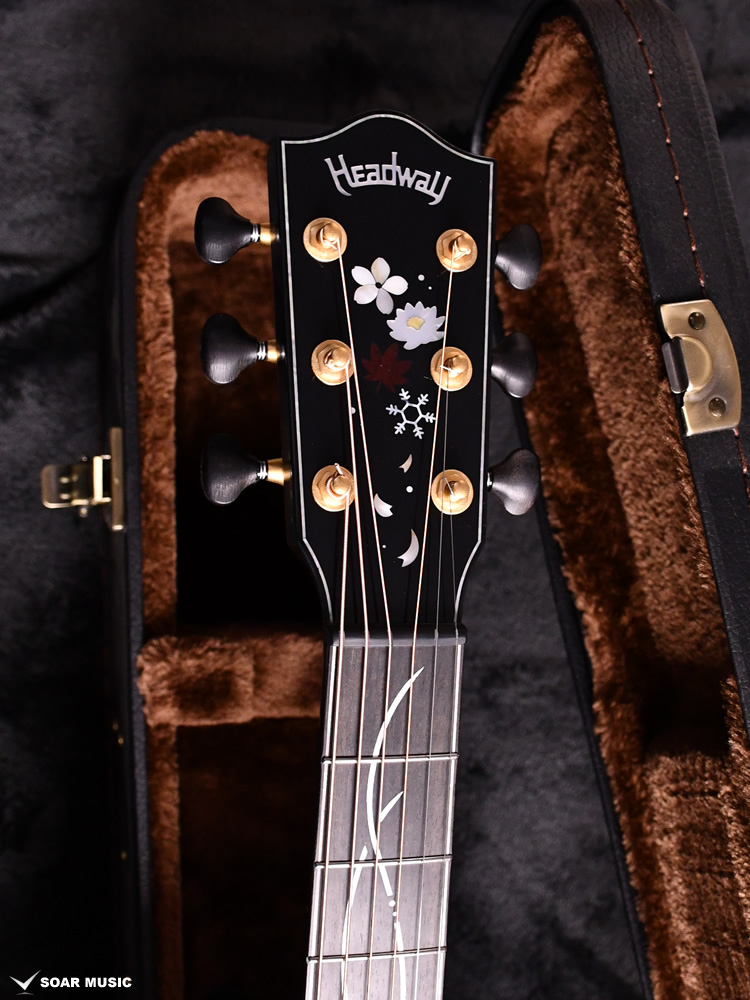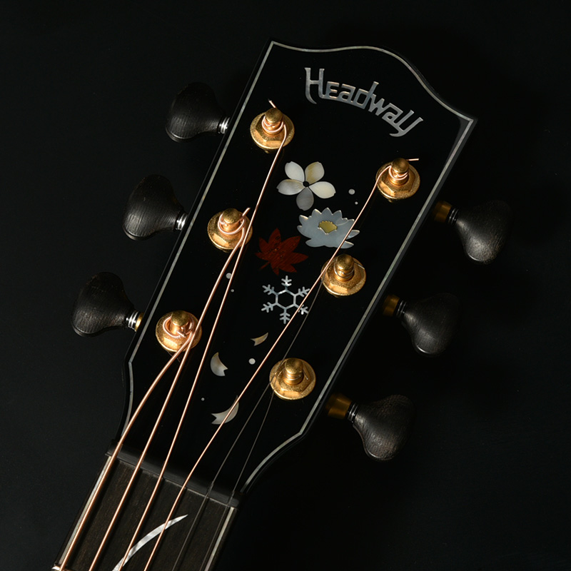 デザインに目を惹かれる桜ギターですが、Headwayとしての「長く良い音で弾けるギター」という基本の信念は忘れていません。 ネックには弾きやすさと剛性を両立した「Extra Slim U Neck」を採用し、ブレイシングには百瀬が基本設計を行っていた「セミフォワードシフトブレイシング」を採用しています。 飛鳥製Headwayは丸太から材料を買い付けることで実現している継ぎの無い1ピースのネックを採用しており、確かな音の伝達と美しい仕上がりとなります。