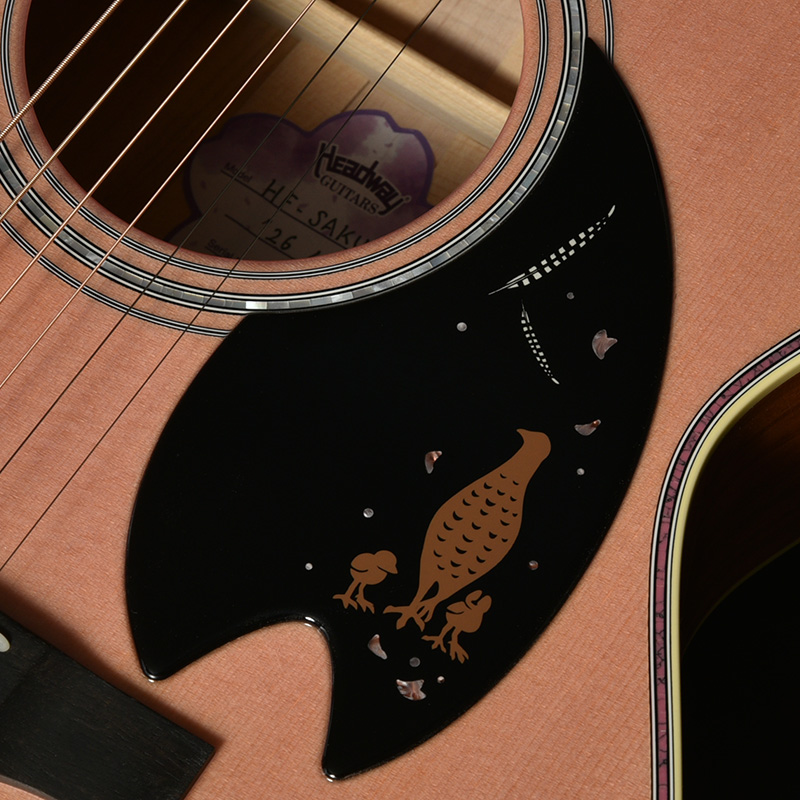 「日本のメーカーだからこそ作れるギターづくり」は、桜モデルを筆頭に、日本国産材である“和材”を世界へ発信する私たちにとって大切なテーマです。 その想いの延長として、日本固有種である「ニホンキジ」をデザインに取り入れることも、私たちにとって必然ともいえる取り組みとなりました。