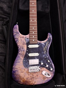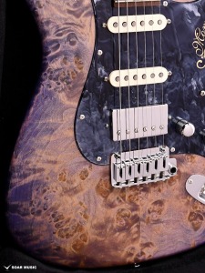 ピックガードには特注で製作しているダークブルーパールのアクリル素材をセレクトしており、ボディカラーとのマッチングで洗練された印象を与えます。