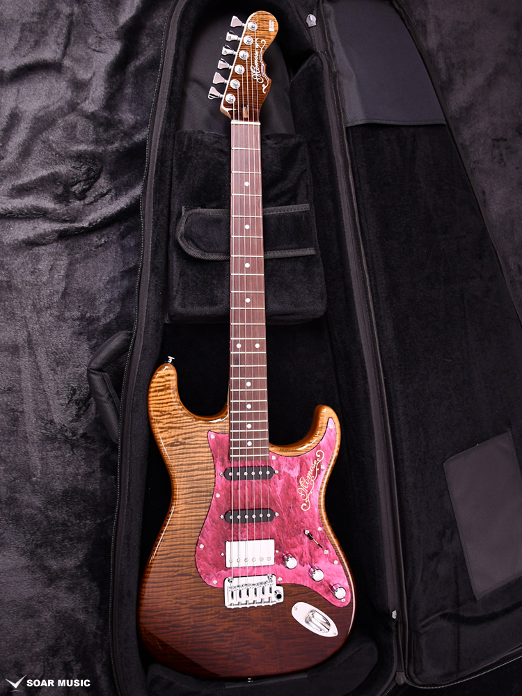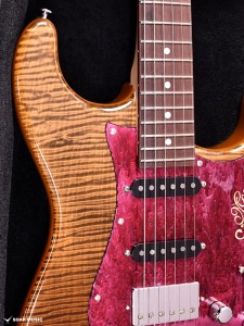 本ラインナップの最大の特徴は「世界で1つのギター」であることです。木々各々の個体が持つ杢目により、すでに2本とない見た目であることはもちろんですが、本ラインナップでは個体ごとに異なるカラーリングやピックガードの組み合わせによって、世界にたった1つの楽器としてお楽しみいただけます。