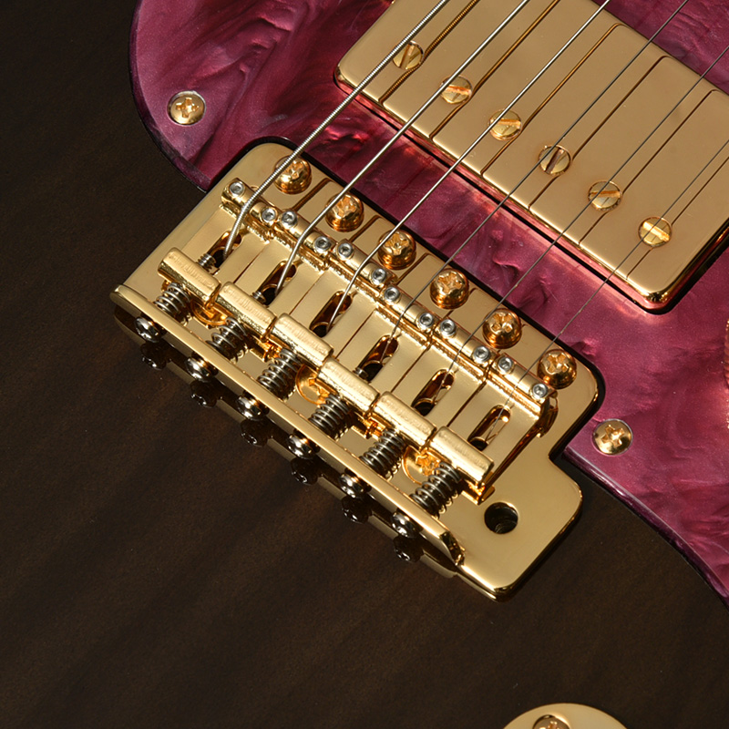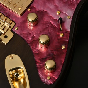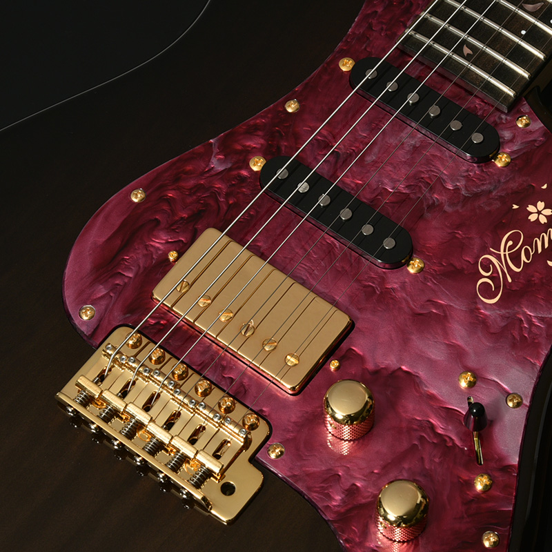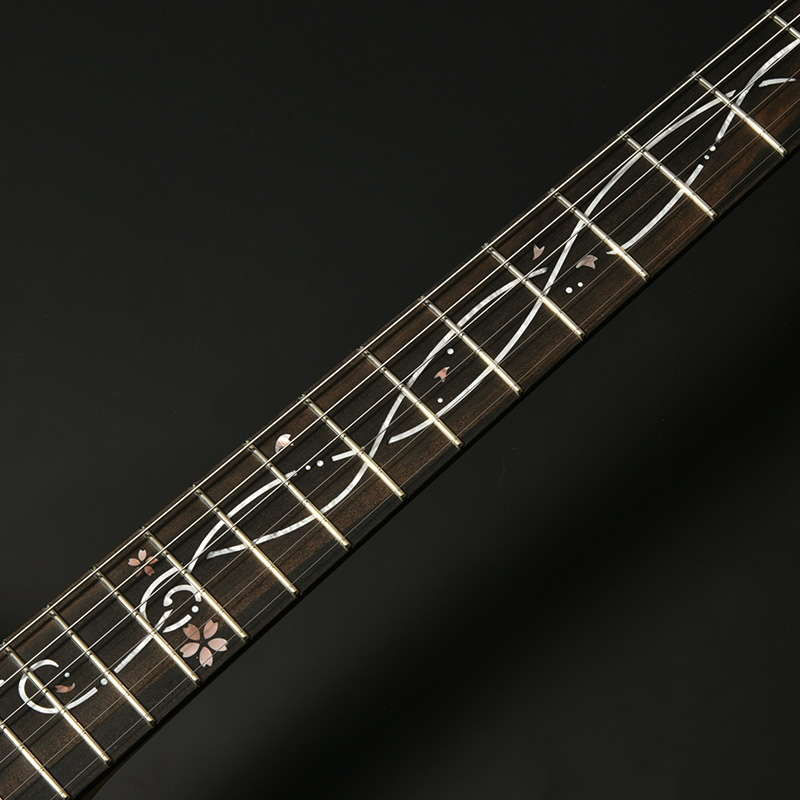 ピックガードには春夏秋冬に合わせ、モデル毎に4色をセレクト。特注品のアクリル素材を用いており、春の桜、夏の睡蓮、秋の紅葉、冬の雪をレジンで表現しております。