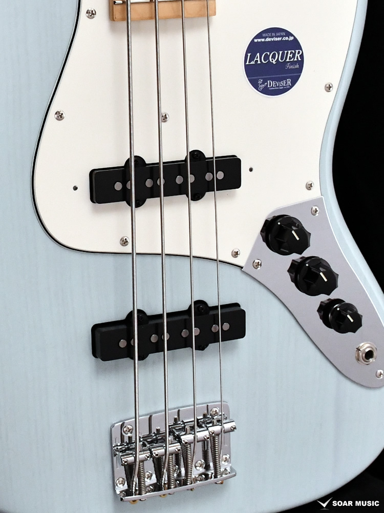 また、アタックにリニアに反応するレスポンス、粒立ちが良くハキハキとしており、スラップでもクリアでパーカッシブなサウンドを得る事ができます。また、スムーズな演奏を可能にするプレートの落とし込み加工やヒールレスカット、ネックサイドのウッドバインディングなどによる高い演奏性の他、ヴィンテージサウンドを基調としつつも、よりモダンスタイルに対応したジャズベースサウンドをお楽しみいただけます。