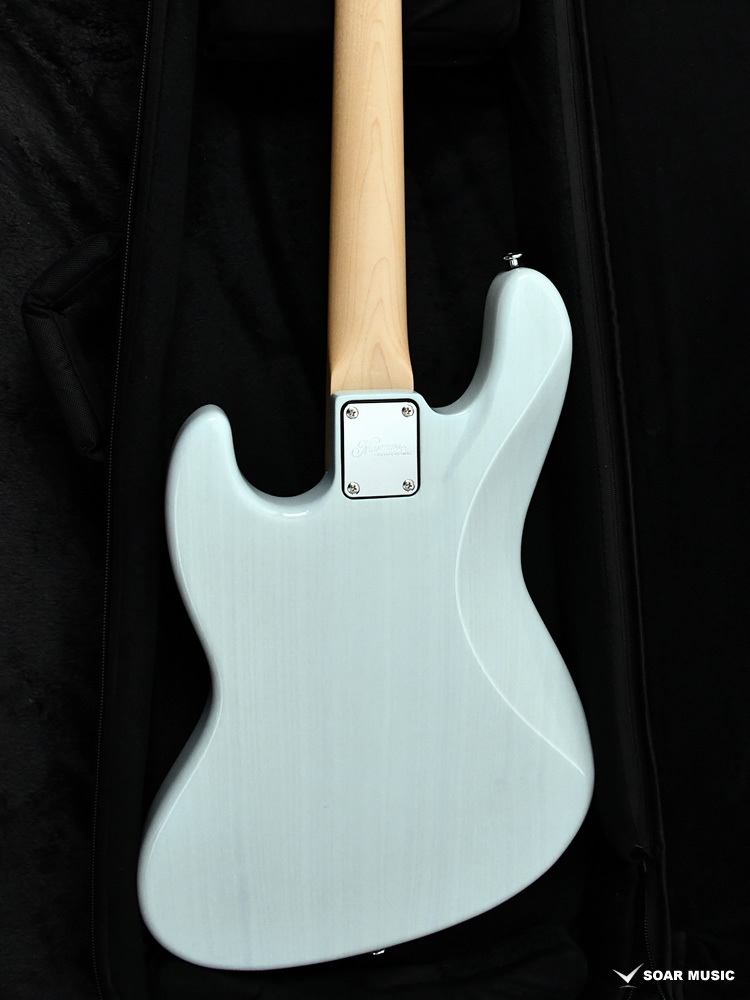 ボディにはアッシュ材を使用し、アタックレスポンスが良く、クリアで抜けの良くメリハリのあるサウンドが特徴です。ジョイント部分にはハイポジションの演奏ストレスを軽減させるヒールレスカットを行い、サウンドに影響を与えるジョイントプレートの採用はそのままに、プレート部分をボディに落とし込む加工を施す事で、トラディショナルなジャズベースらしいサウンドはそのままに、より高い演奏性を実現しています。 締め付けすぎず、程よくタイトに仕上げられたネックポケットは、ネック・ボディの材の特性、それぞれの鳴りを共有させた一体感のある鳴りを実現しており、ハンドメイドならではの職人の技をご確認いただけます。