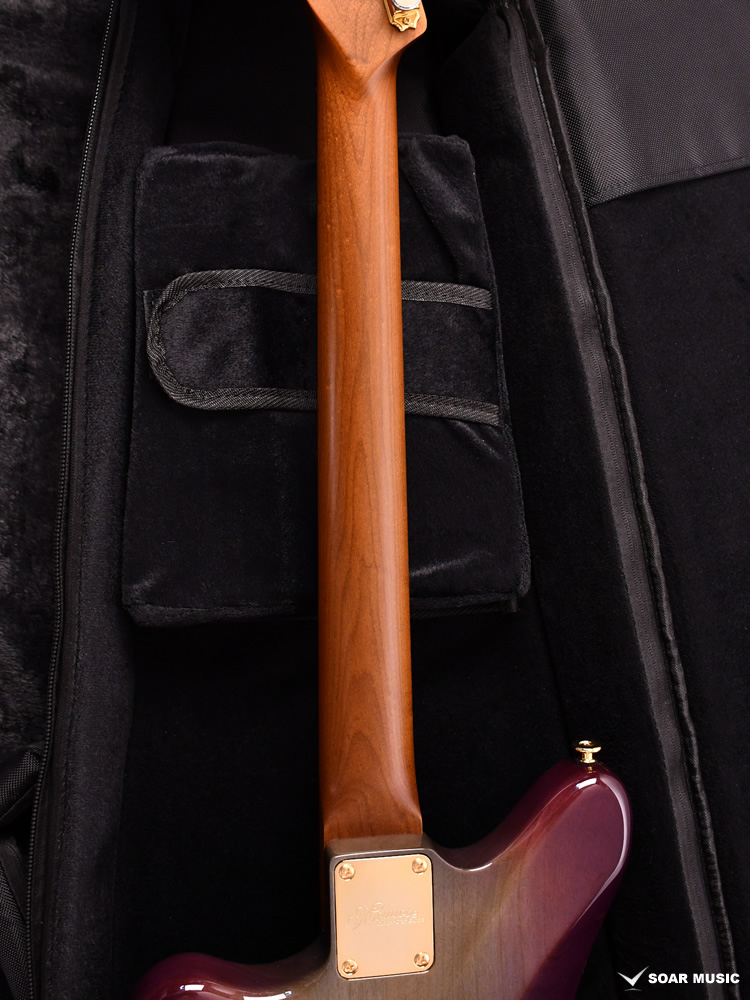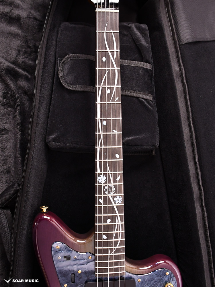 本モデルのボディトップは京都府産の桜材を使用。桜は比較的硬質な材であり、音響面においては煌びやかなサウンドを特徴とします。ボディバックに定番のアルダー材を用いることで、桜材特有のニュアンスを備えつつも、幅広いジャンルでの音作りを可能とします。