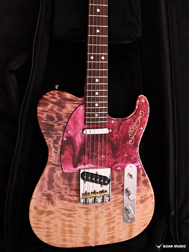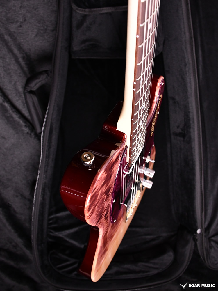 和材として人気の高いトチ材をボディに使用した一本です。トップ材には美しいフレイム杢目を有した個体を選定し、バック材にも同じくトチを採用しています。中〜高音域に特徴のある抜けの良いサウンドを持ち、オーバードライブをかけた際の歪の乗りも非常に良く、その音響特性を発揮して様々なジャンルに対応可能です。