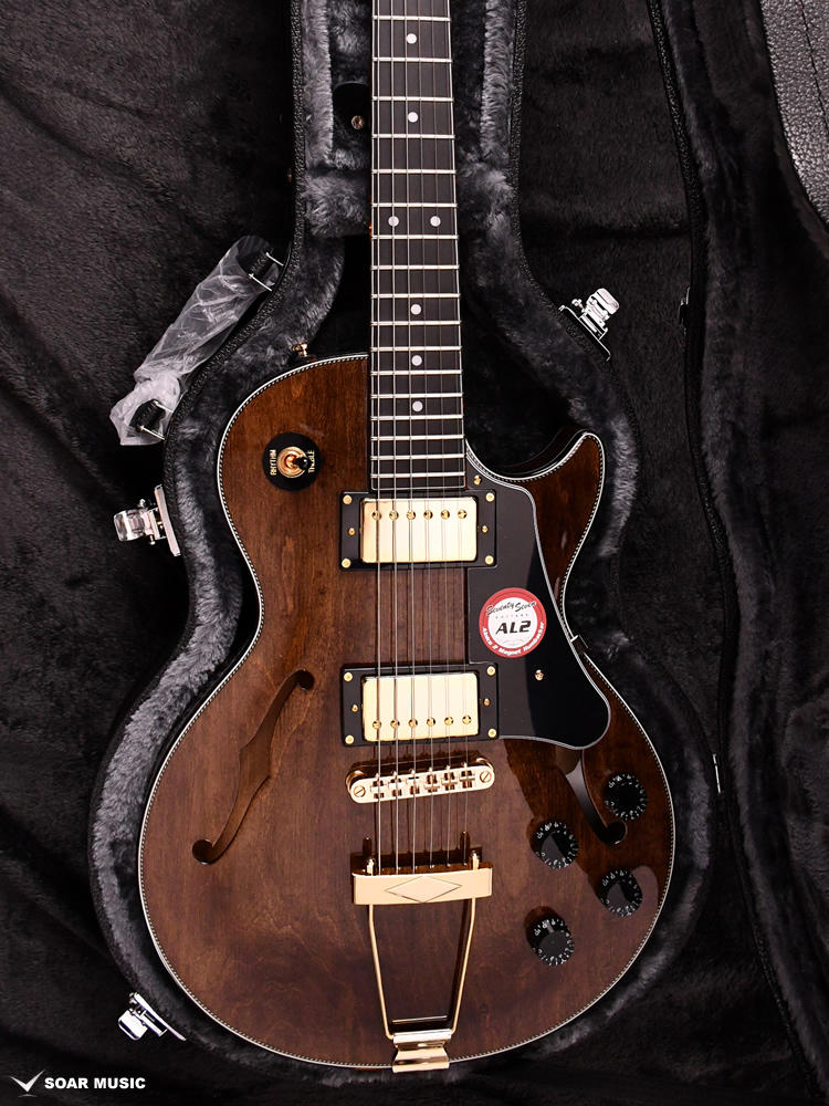 ボディトップにはプレーンメイプルを採用し、バック材にはマホガ二ーに似た音響特性で知られるアフリカ原産のオクメ材が使用されています。セミホロウモデルながらエレキギターに求められる芯のあるサウンドも持ち、Jazz以外のジャンルにも対応可能です。