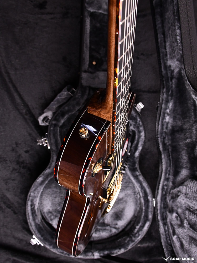 飛鳥工場製モデルの内部構造を踏襲し、大きく彫り込んだチャンバード構造を採用。センターブロックを残したセミホロウ構造でありながら、可能な限り広くくり抜く設計により、豊かな生鳴りと本体重量の軽量化を実現しています。