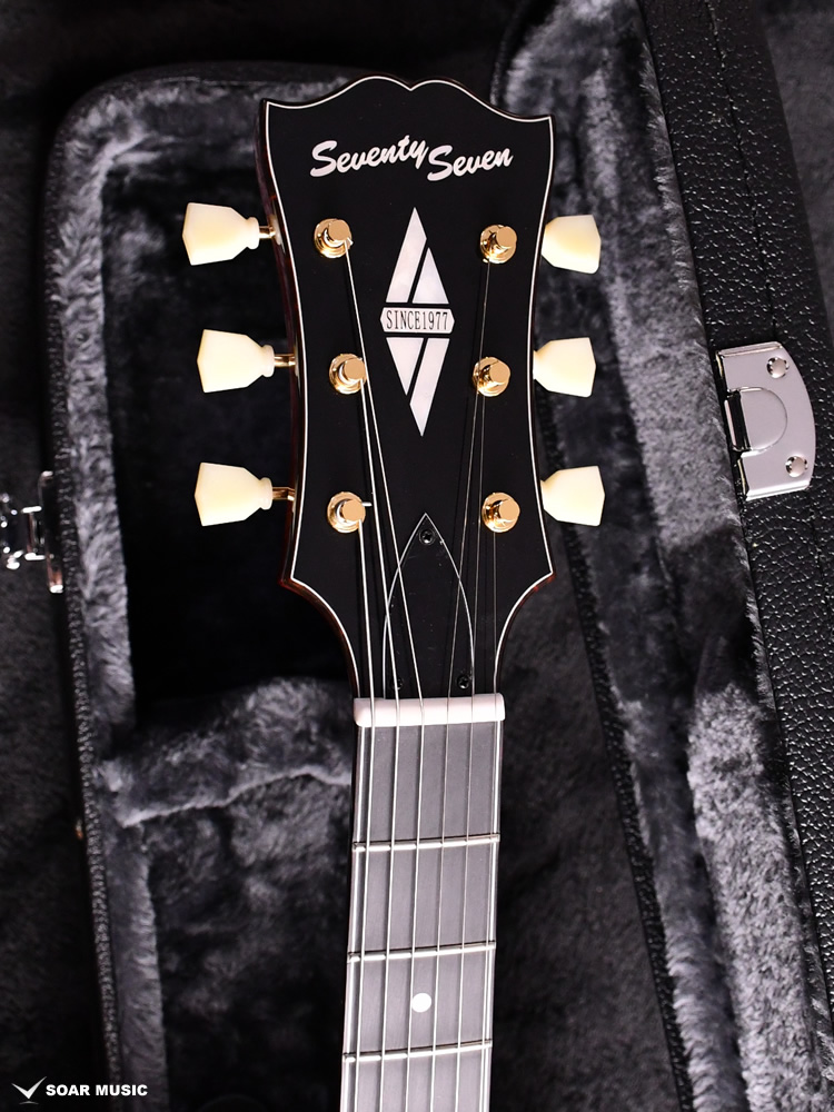 アルニコ2マグネットを採用したSeventySevenオリジナルピックアップ、 「SeventySeven AL2」を搭載。クリーントーンではきらびやかな鈴鳴り感を表現しつつも耳に痛くない暖かさを併せ持ち、ドライブをかけると歯切れの良いエッジの効いたクランチサウンドを出力します。プレイヤーの創造力を膨らませて豊かな演奏表現を生み出します。