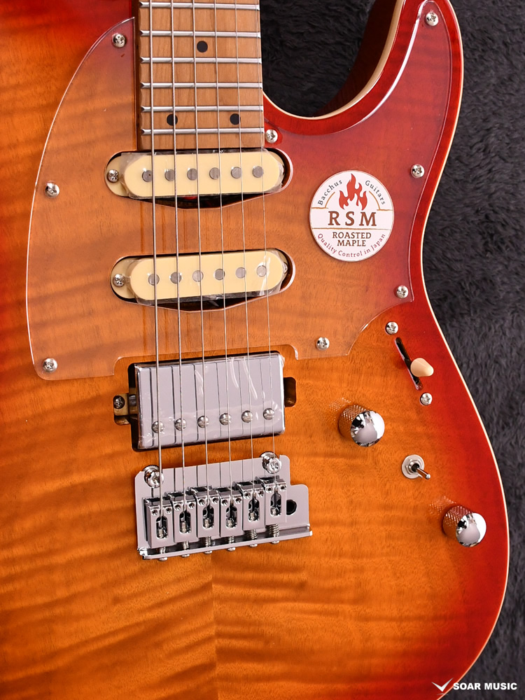 ネックにはBacchusの新機軸でもあるローステッドメイプルを採用。ローストする工程上でゆがみが生じてしまうような木材はその時点で淘汰されるため、ネックとして搭載されている個体は非常にゆがみやねじれに強く、取りやすい価格帯ながら長い間ご愛用できる仕様となっております。