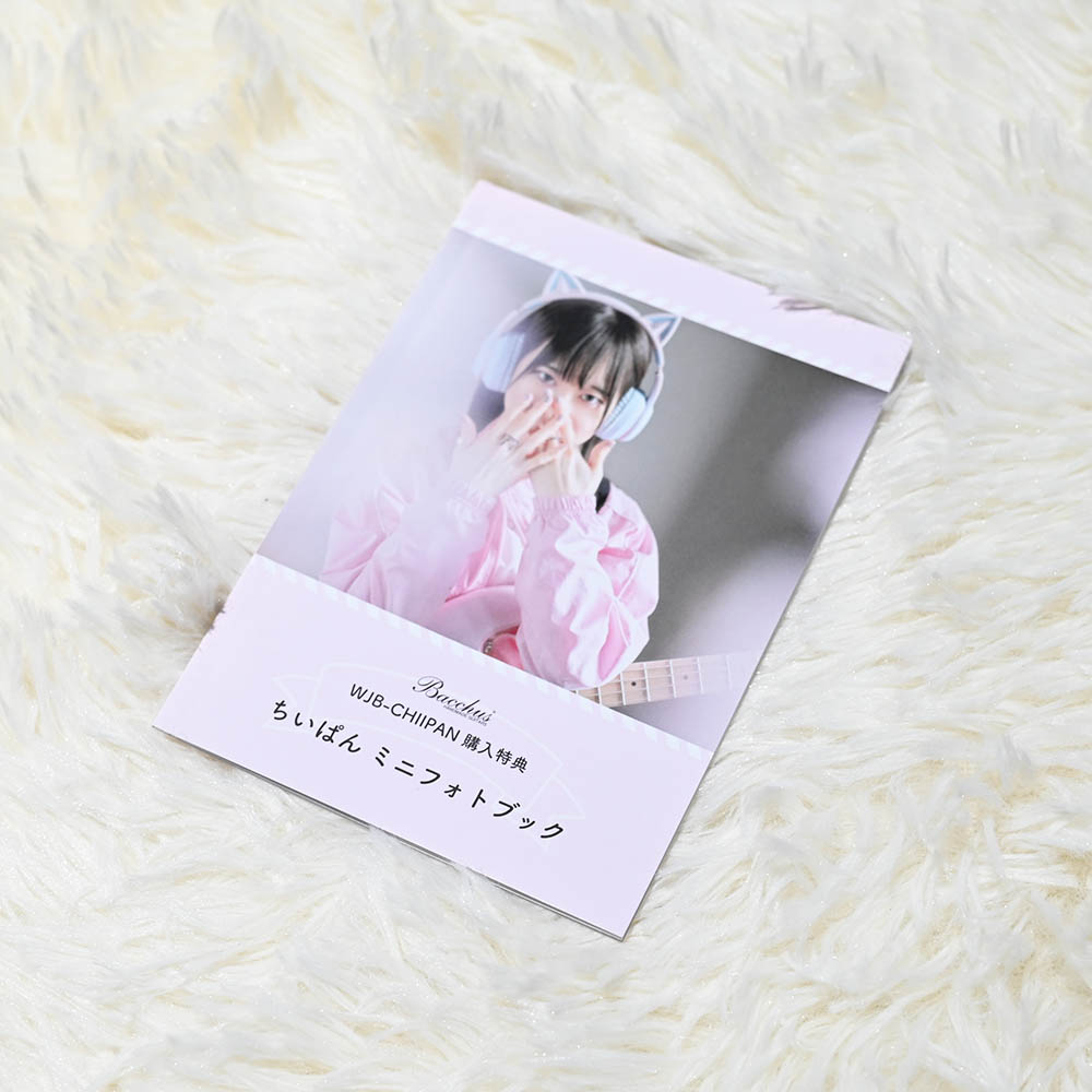 購入特典として、本モデルのために撮り下ろしたA6サイズのミニフォトブック、ポストカードに加えて、ちいぱん本人のデザインした「ちいぱんだ」ステッカーが付属します。