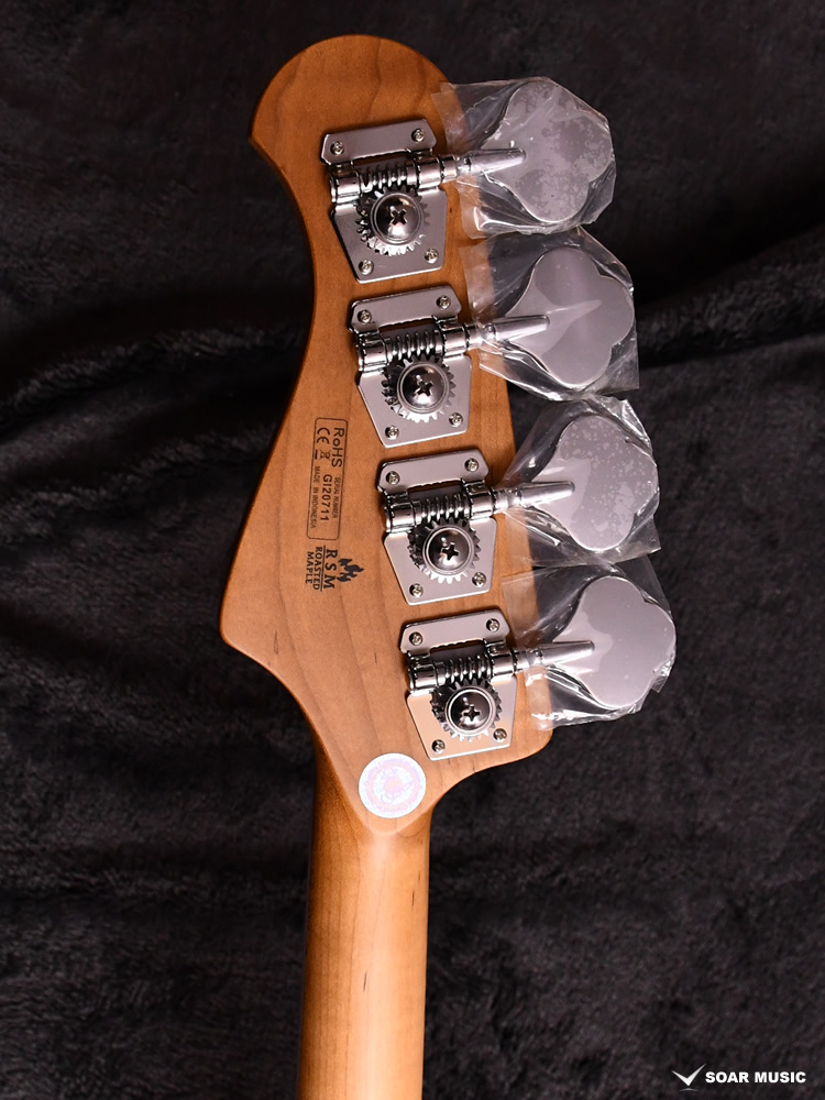 ローステッドメイプルとはメイプルを高温で加熱処理して材の中の水分や油分を揮発させることにより木材を経年変化した状態に人工的に近づけた材のことです。経年劣化が進んだ材は歪みやねじれが生じにくくなります。ネックに使用されるとその効果は安定性だけでなくサウンドにも及び、豊かな生鳴りと経年変化したビンテージのようなこなれたトーンを生み出します。一般的に高級機種などで用いられる材ですが、手に取りやすい価格帯に落とし込むことに成功しました。