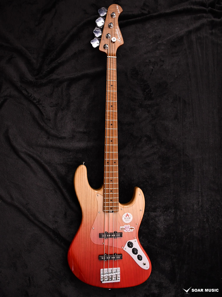 ローステッドメイプルとはメイプルを高温で加熱処理して材の中の水分や油分を揮発させることにより剛性を高めた材。ネックに使用されるとその効果は安定性だけでなくサウンドにも及び、豊かな生鳴りと経年変化したビンテージのようなこなれたトーンを生み出します。高級機種で使われることの多いこの本格派仕様をリーズナブルな価格帯に落とし込んだBacchusの新しい製品ラインナップです。