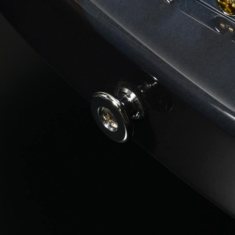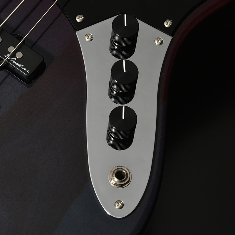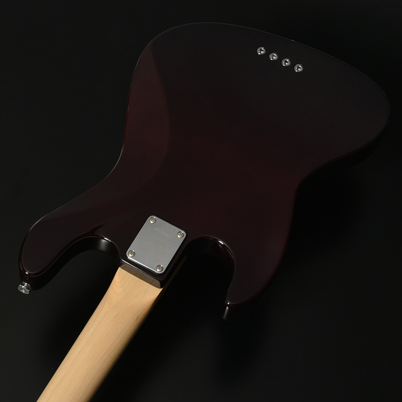 本モデルのボディトップには桜材を使用し、その繊細な木肌を引き立てるように、冬の夜空を思わせる深いブルーから紫へと移ろうグラデーションで仕上げました。十分な硬質さを持つ桜材とボディバックに用いられる定番のアルダー材により、桜材特有の煌びやかなニュアンスを備えつつも、ジャンルを選ばない幅広い音作りを可能とします。
