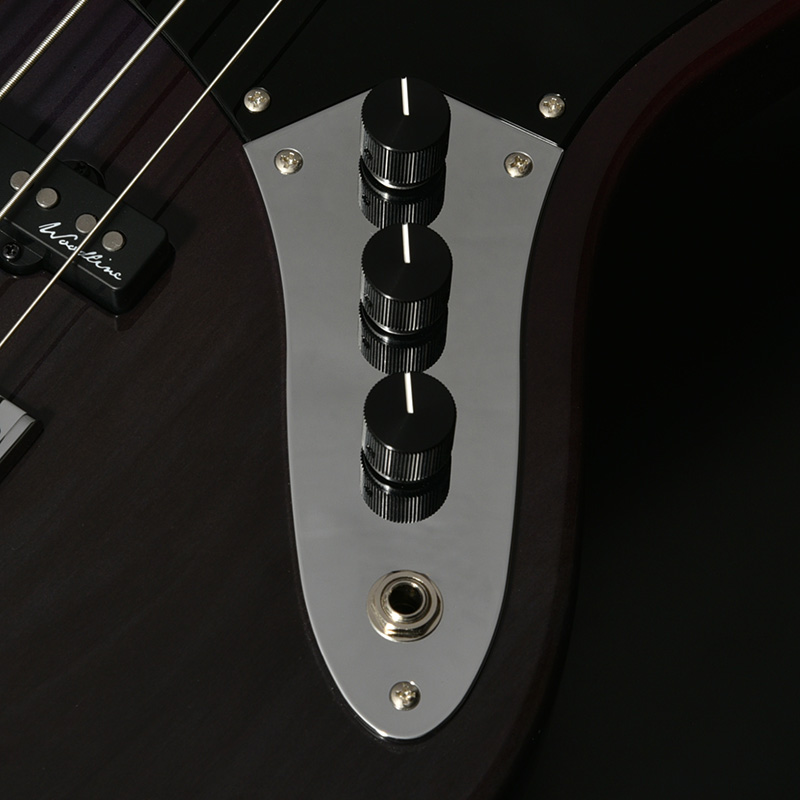 トーンノブをプルアップすることで、ターボスイッチがオンとなります。2つのシングルピックアップをシリーズ(直列)接続し、太くハムバッキング・ピックアップのようなサウンドを作り出します。(※ターボスイッチがオンの時音量はフロントVolで調整します。この時リアVolはバイパスされます。)
