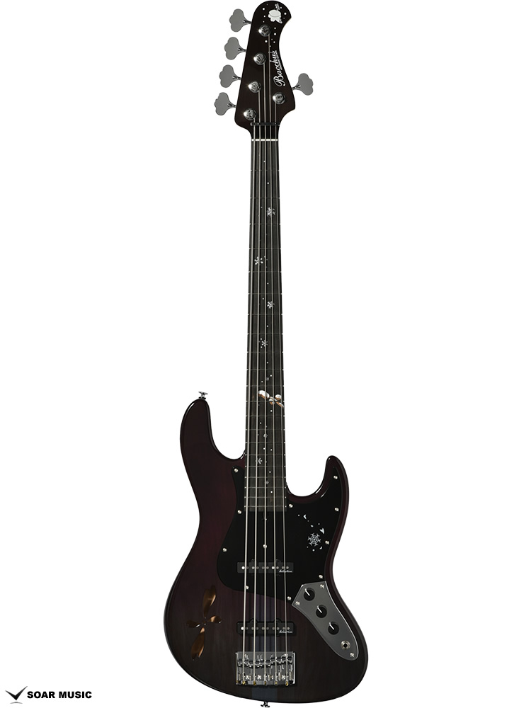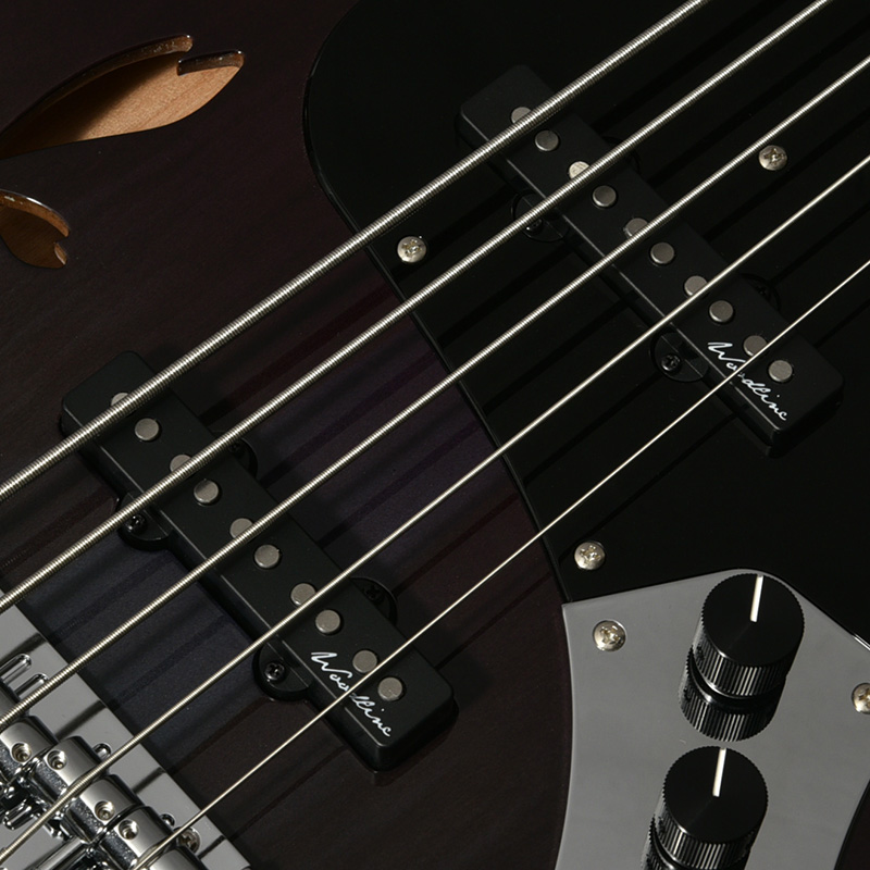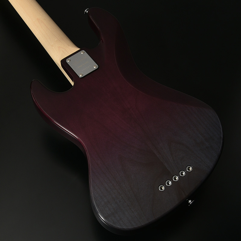 本モデルのボディトップには桜材を使用し、その繊細な木肌を引き立てるように、冬の夜空を思わせる深いブルーから紫へと移ろうグラデーションで仕上げました。十分な硬質さを持つ桜材とボディバックに用いられる定番のアルダー材により、桜材特有の煌びやかなニュアンスを備えつつも、ジャンルを選ばない幅広い音作りを可能とします。