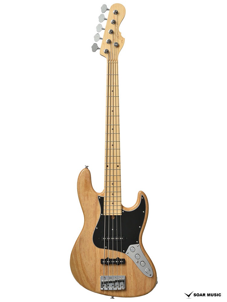 アッシュボディ・メイプル指板の5弦ベース。ネックのウッドバインディングや深めのカッタウェイなど、モモセ独自のこだわりが随所に見られ、プレイアビリティも優れた上質の5弦ジャズベースモデル。