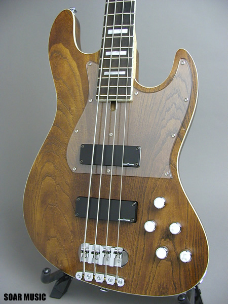 内外のトップベーシストに愛用されているSTRONGも"02 STRONG"にアップグレードしました。変更点は、フラットトップからエルボーコンタードに沿ったセルバインディングのボディへの変更により、よりプレイアビリティを向上させました。オリジナルDBブリッジの採用により、安定したサスティーンとオクターブピッチを実現。更に、クリアーで中高音域の豊かなHMCアルニコHBの採用。バルトリーニのNTMB3プリアンプとのマッチングにより、非常にワイルドレンジなトーンコントロールが可能です。ベースは30Hzを+-15db、トレブルは10Khzを+-16dbそれぞれブースト&カット可能。ミドルは500Hzを+-10dbの幅でブースト&カット可能。ライトアッシュのボディから、STRONGの名の通り、ローエンドの太い安定したボトムラインを確実に支えます。