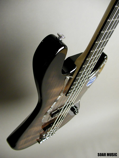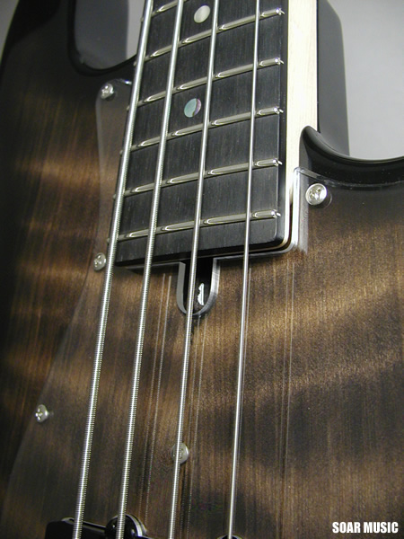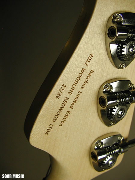 ボディトップにはフレイム杢の入った希少価値の高いレッドウッド材を使用。 レスポンスが早く、抜けの良い高音域、暖かみがありタイトな中低音域など、 楽器材として優れた特性を備えています。 また、素材の鳴りを素直に表現するパッシブ仕様のWOODLINEモデルを基に 製作する事で、その上質なサウンド特性を充分にご堪能いただけます。