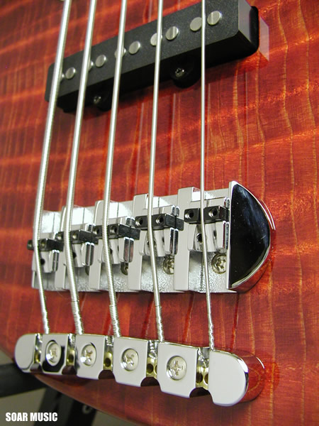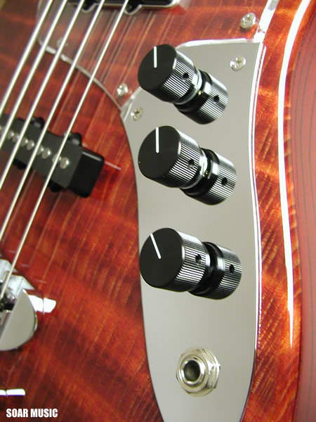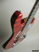 ボディトップにはフレイム杢の入った希少価値の高いレッドウッド材を使用。 レスポンスが早く、抜けの良い高音域、暖かみがありタイトな中低音域など、 楽器材として優れた特性を備えています。 また、素材の鳴りを素直に表現するパッシブ仕様のWOODLINEモデルを基に 製作する事で、その上質なサウンド特性を充分にご堪能いただけます。