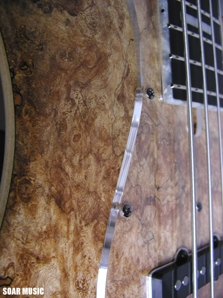 銘機WOODLINEに、ご覧の通りの極上のバールメイプルをトップに配した