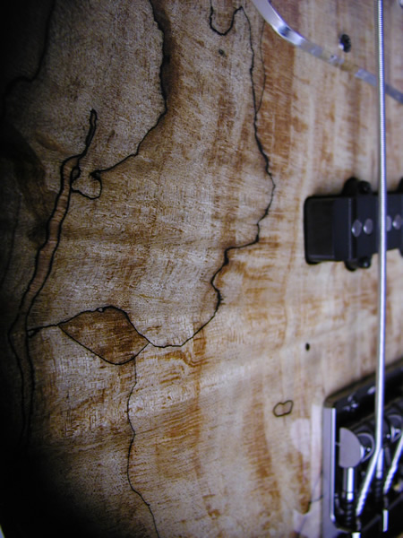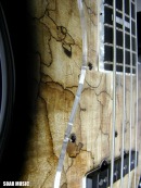 銘機WOODLINEに、ご覧の通りの極上のスポルテッドメイプルをトップに配した