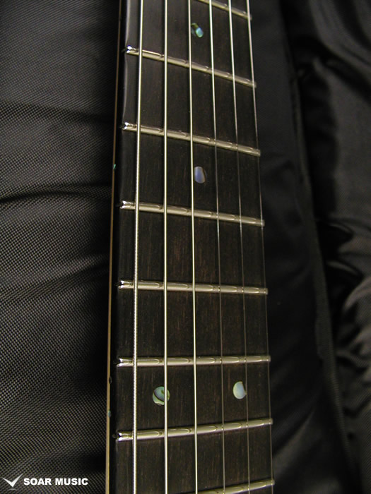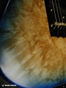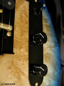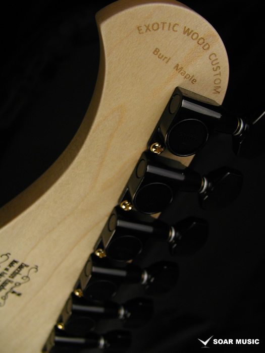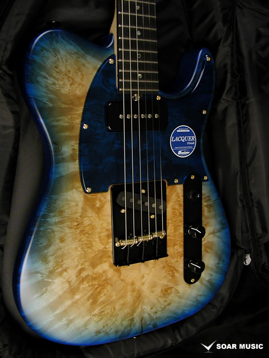 「バール杢」が細かく出たバールメイプルを使用しました。 バール杢は木の根元などに出来た心材組織とは異なる中にできる模様を指します。その瘤ができる要因や過程など判明していないことも多く、自然が作り出す複雑な模様でメイプル材の場合にはうっすらとしたインパクトの薄いものからハイエンドギターに使用されるような細く出たバール杢がそれぞれ際立つ迫力のあるものまで様々です。本モデルにはやや大きめのバール杢が細く、インパクトのある外観にその杢を際立たせるようバーストカラーを吹いています。