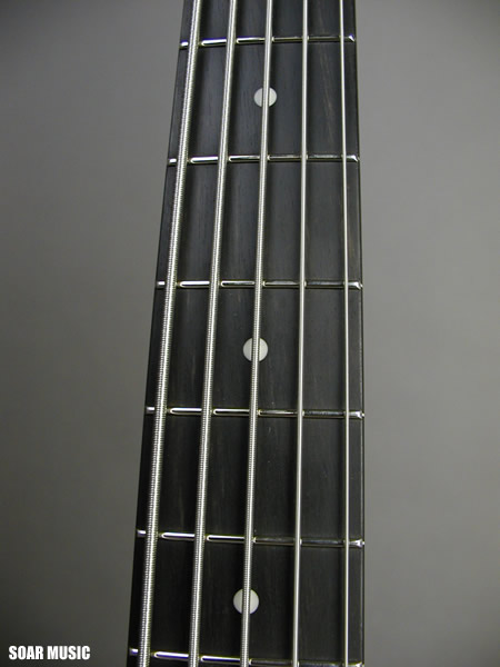 5弦ベース。精悍でスタイリッシュな印象の、ブラック×ゴールドパーツバージョン。