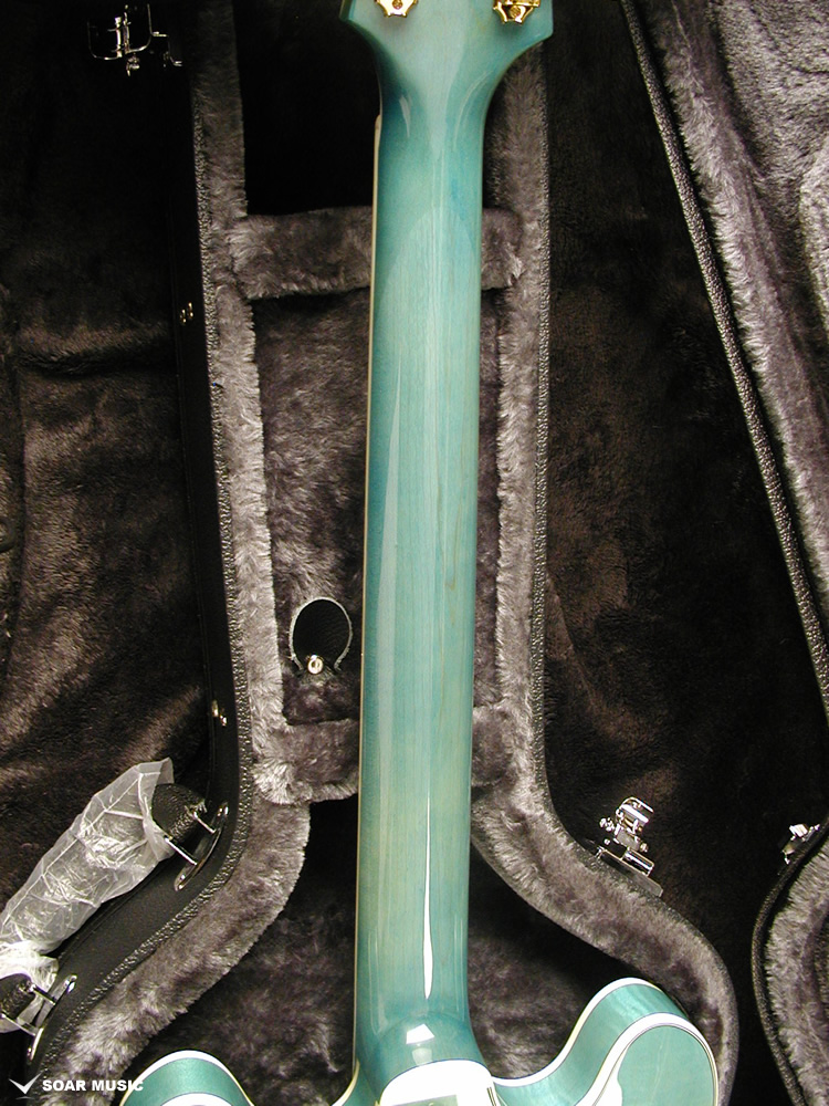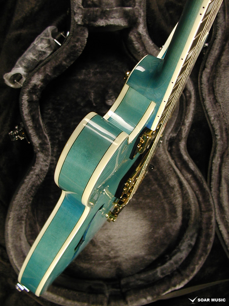 また、ゴールドパーツやパールホワイトのインレイとも相性が良く、高級感を感じさせる佇まいはステージでも映える1本になりました。