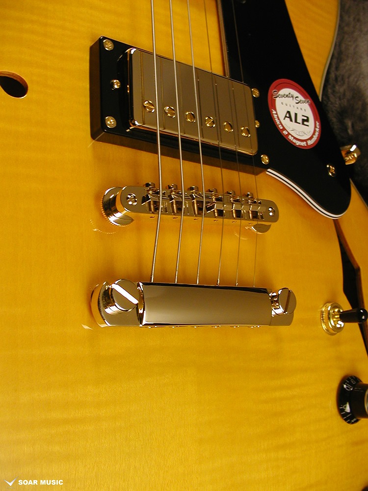アルニコ2マグネットを採用したSeventySevenオリジナルピックアップ、 「SeventySeven AL2」を搭載。クリーントーンではきらびやかな鈴鳴り感を表現しつつも耳に痛くない暖かさを併せ持ち、ドライブをかけると歯切れの良いエッジの効いたクランチサウンドを出力します。プレイヤーの創造力を膨らませて豊かな演奏表現を生み出します。