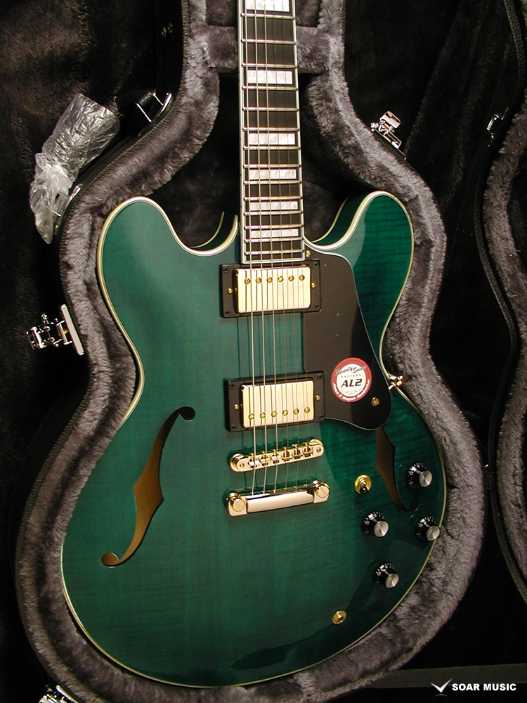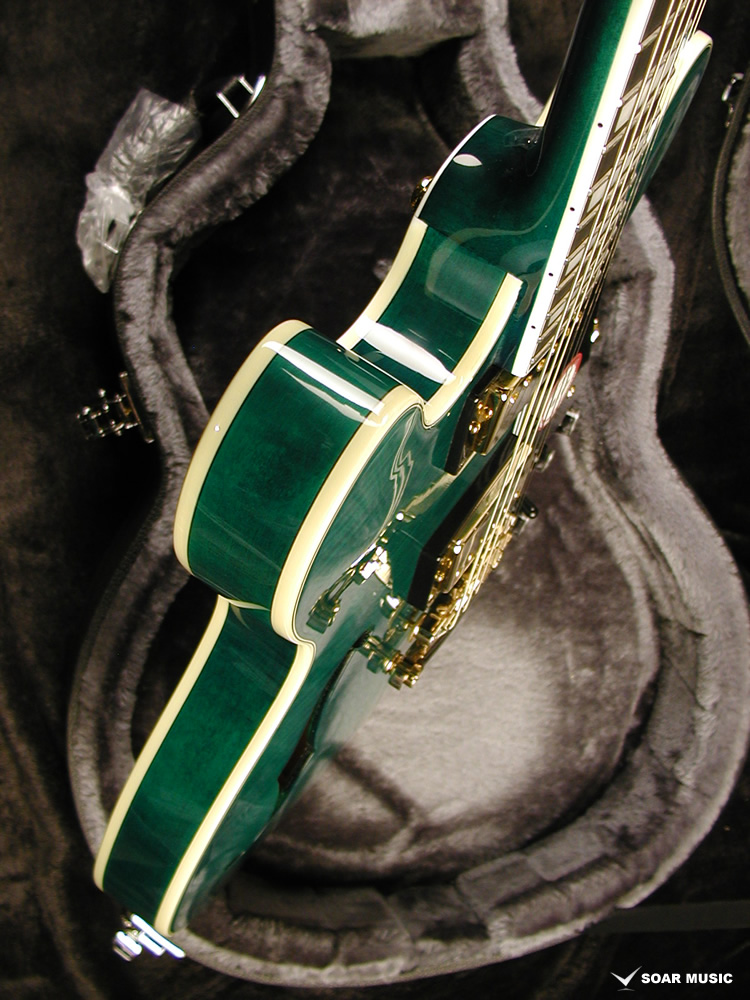 また、ゴールドパーツやパールホワイトのインレイとも相性が良く、高級感を感じさせる佇まいはステージでも映える1本になりました。