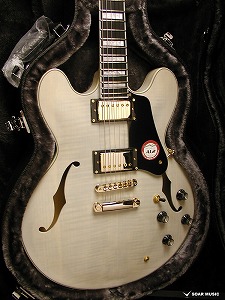 また、ゴールドパーツやパールホワイトのインレイとも相性が良く、高級感を感じさせる佇まいはステージでも映える1本になりました。