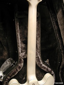“77”を図案化したオリジナルのヘッドインレイが輝くヘッド。バインディングと組み合わせてスタンダードモデルには無い豪奢な雰囲気が漂います。