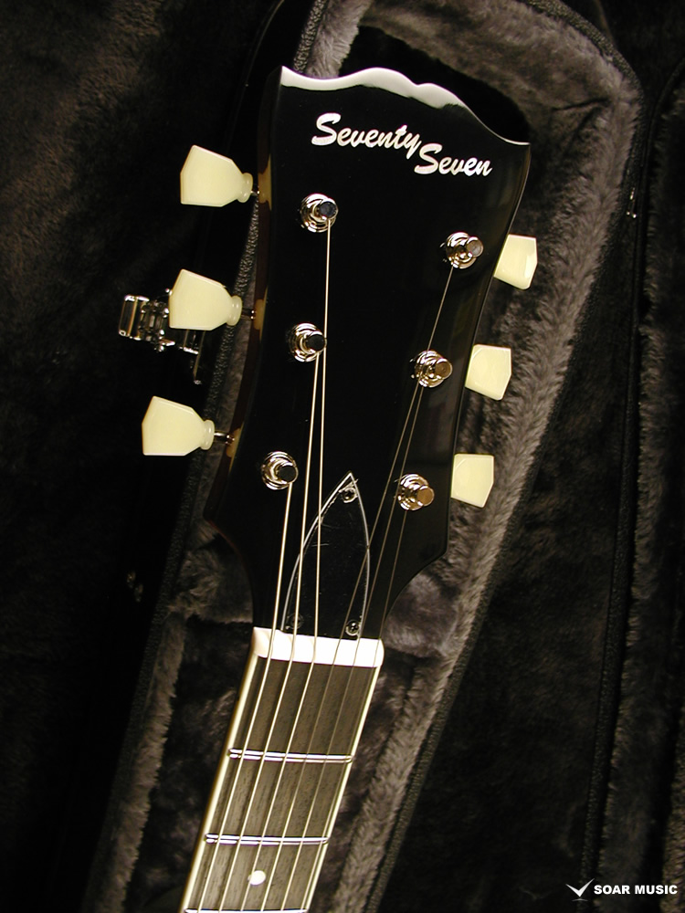アルニコ2マグネットを採用したSeventySevenオリジナルピックアップ、 「SeventySeven AL2」を搭載。クリーントーンではきらびやかな鈴鳴り感を表現しつつも耳に痛くない暖かさを併せ持ち、ドライブをかけると歯切れの良いエッジの効いたクランチサウンドを出力します。プレイヤーの創造力を膨らませて豊かな演奏表現を生み出します。