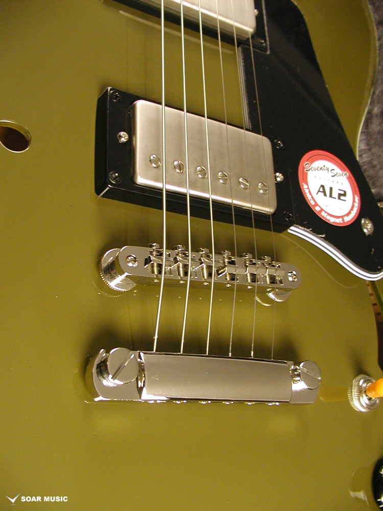 アルニコ2マグネットを採用したSeventySevenオリジナルピックアップ、 「SeventySeven AL2」を搭載。クリーントーンではきらびやかな鈴鳴り感を表現しつつも耳に痛くない暖かさを併せ持ち、ドライブをかけると歯切れの良いエッジの効いたクランチサウンドを出力します。プレイヤーの創造力を膨らませて豊かな演奏表現を生み出します。