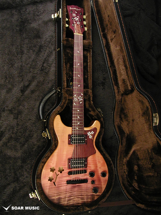 ボディトップには美しいフレイム杢の入った桜材を使用しており、パープルからナチュラルに変化する美しいシースルーのグラデーションで仕上げられています。