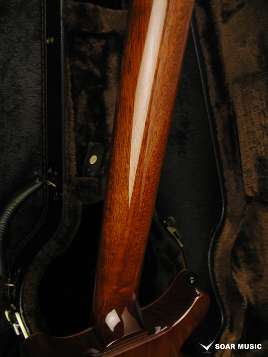 ネック材は豊かな中低音域の特性を持つアフリカンマホガニー、指板材にはローズウッドに似た特性を持ち、鮮やかな色合いが特徴のパープルハートを使用しています。