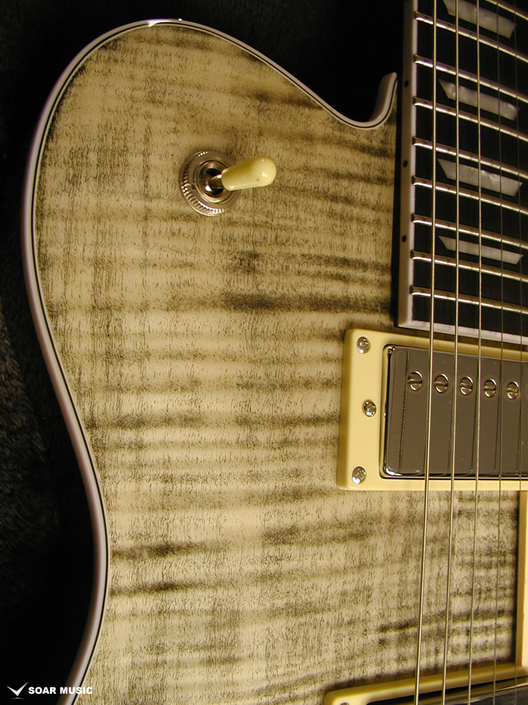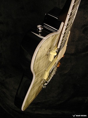 最大の特徴と言えるのがこのアーチ形状のボディトップです。フラットトップのエレキギターに比べて、よりトップ材の杢目やカラーが引きたてられたアイコニックなルックスを持ちます。