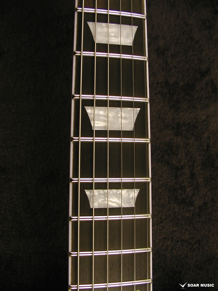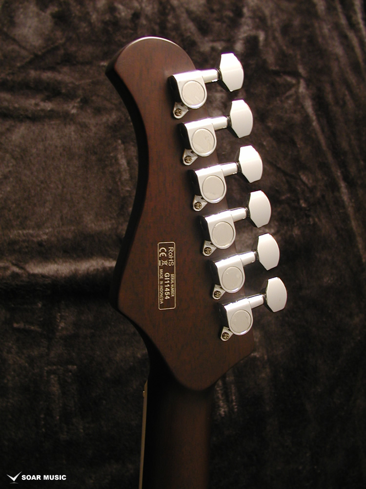 一般的なシングルカット・モデルよりもフレット間隔の少し狭い、所謂ミディアムスケール628mm(24.75inch)を採用。ボルトオンタイプのネック構造とも相まり、ハイフレットでもベンドをしやすい特徴があります。