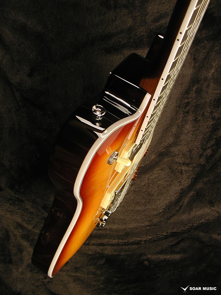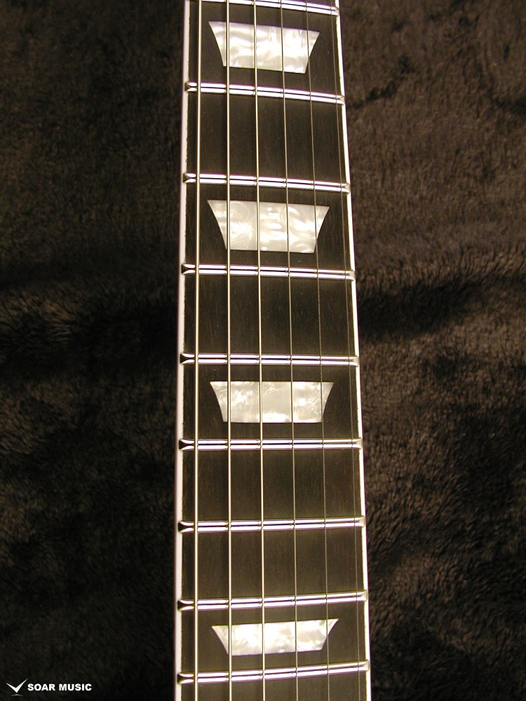 一般的なシングルカット・モデルよりもフレット間隔の少し狭い、所謂ミディアムスケール628mm(24.75inch)を採用。ボルトオンタイプのネック構造とも相まり、ハイフレットでもベンドをしやすい特徴があります。