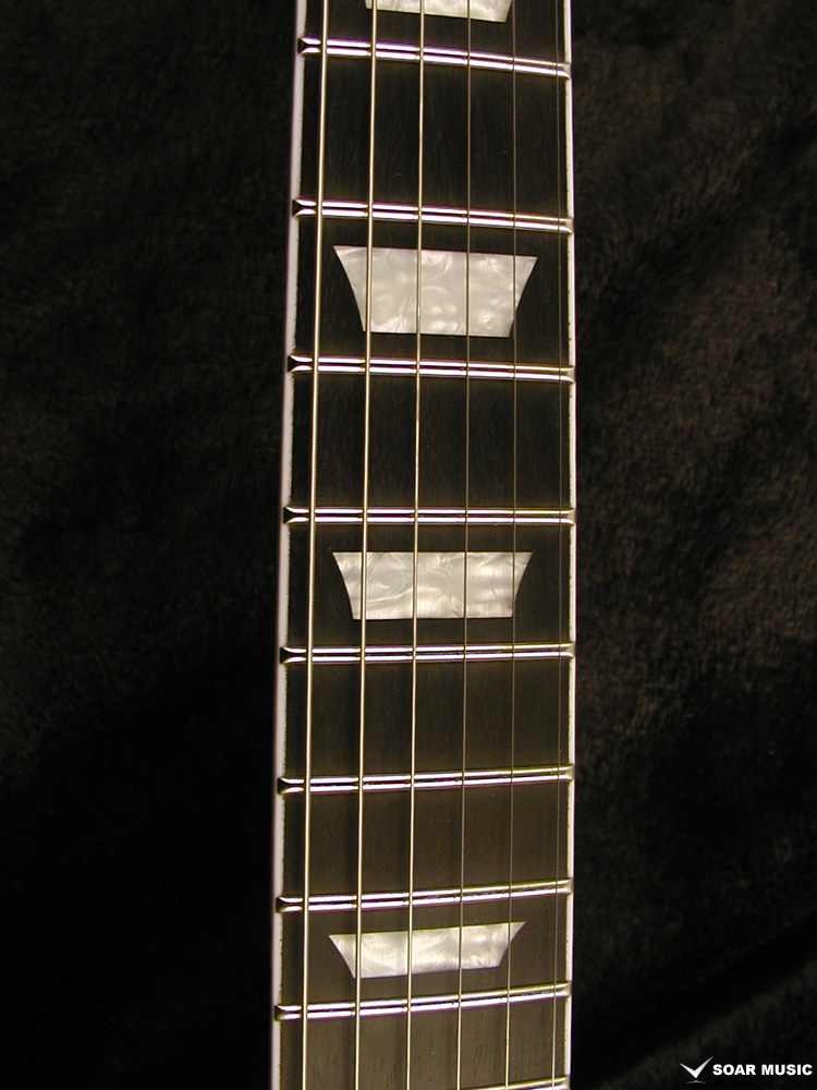 一般的なシングルカット・モデルよりもフレット間隔の少し狭い、所謂ミディアムスケール628mm(24.75inch)を採用。ボルトオンタイプのネック構造とも相まり、ハイフレットでもベンドをしやすい特徴があります。