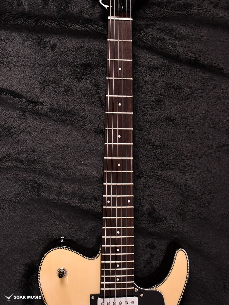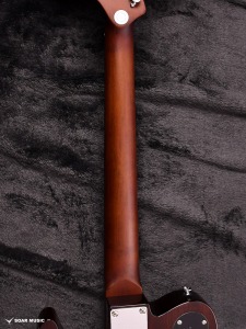 適度な重量を備えたナトーボディより、立ち上がって演奏する際にもバランス感の良さを発揮します。ボディ外周に施されたヘリンボーンスタイルのバインディングと落ち着いた雰囲気のカラーリングが特徴です。