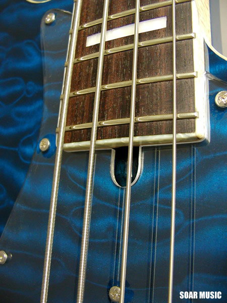 また、美しい木目を存分に活かせるクリアピックガードを装着し、更にネック・ボディにはパール柄のバインディング、ブロックポジションマークを採用するなど、細部の仕様にも拘ったスタイル、サウンドともに隙の無い1本に仕上がっています。 |