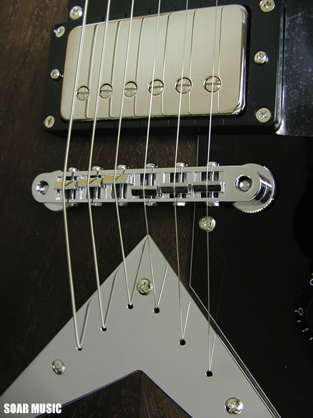 加工、組み込みを行う事でフライングVならではのトーンと材の鳴りを存分に引き出した