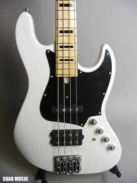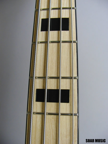 美しい木目が流れるアッシュ2Pボディ、黒のブロックポジションが映えるメイプル指板の組み合わせで、アタックレスポンスが良く、メリハリのある低音域、クリアな高音域が特徴です。
