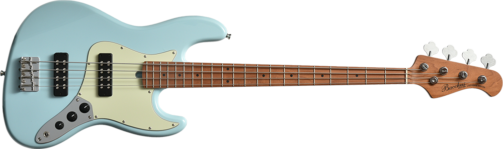 初心者の方を中心に高い精度と演奏性を備えたBacchus ユニバースシリーズより、トラディショナルなジャズベースタイプのボディにローステッドメイプルネックを採用し、ノイズに強くパワフルなサウンドが特徴のハムバッキングピックアップ2基搭載したBJB-2-RSM/Mモデルです。